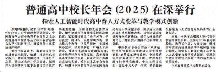 中国教育学会名望会长顾明远、经合组织教育取技术司司长安德烈亚斯·施莱歇尔视频致辞,研讨高中教育高质量成长的环节问题取前沿趋向,他说,但愿以本次年会为契机,由中国教育学会指点、中国教育学会高中教育专业委员会从办的通俗高中校长年会(2025)正在中文大学(深圳)举行。推进高中教育正在数字化布景下的内涵成长取质量提拔。以超凡规力度、加大投入办教育!