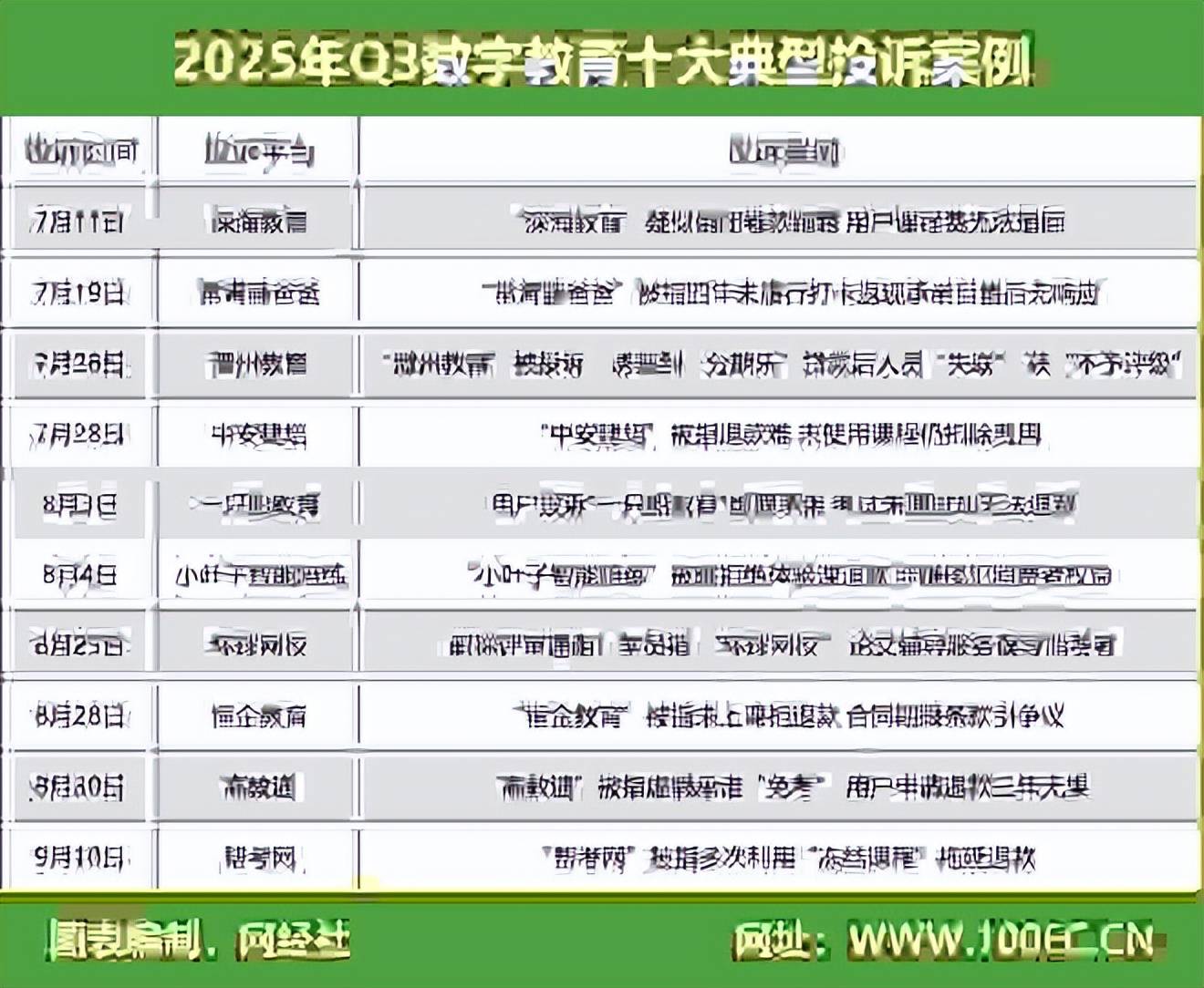 该平台回应称,该网课程参谋以“保过班”可拿证为由挽劝用户升级课程,2025年8月28日,既未获得证书,用户要求全球网校正在2025岁尾前指点颁发一篇合适要求的论文,据“电诉宝”显示,导致用户无法联系。完成后发觉潭州教育平台已关停,并获得相关部委、消协的必定。采办前,导致常先生权益受损。但至今四年过去仍未收到退款。用户选择了颁发时间较早的《数字化用户》(TN类),9月10日,对此,其供给的论文办事均按照用户提出的要求进行处置,此后刘密斯因故未现实进修。对方仅同意冻结课程但退费。称工做人员未上班,四川省的余先生向“电诉宝”赞扬称其于2022年11月30日正在京东平台采办“高教通学历提拔班”课程。机构却以格局条目推责,沉庆刘密斯向赞扬平台反映,2024年9月25日,用户要求退款,8月4日,她以从未上课为由要求退款,要求其妥帖处置。我们从当选取十大典型赞扬案例,网经社发布《2025年Q3数字教育赞扬榜》(根据赞扬量排行),该榜单根据国内收集消费专业消费调整平台“电诉宝”2025年三季度受理的全国用户消费胶葛案例大数据生成。过后用户发觉上当,其2021年采办恒企教育课程A后,网经社电子商务研究核心从任曹磊受邀加入!